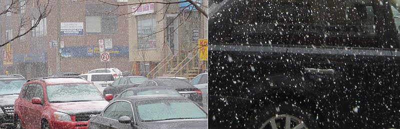It did finally clear up a little but these gusty visits were hard to take. Nonetheless, we were not the only ones getting a late taste of winter. The street saw many shoppers after the early-afternoon snow stopped. And tomorrow, the Weather Channel is predicting variable cloudiness with a high of 7C.